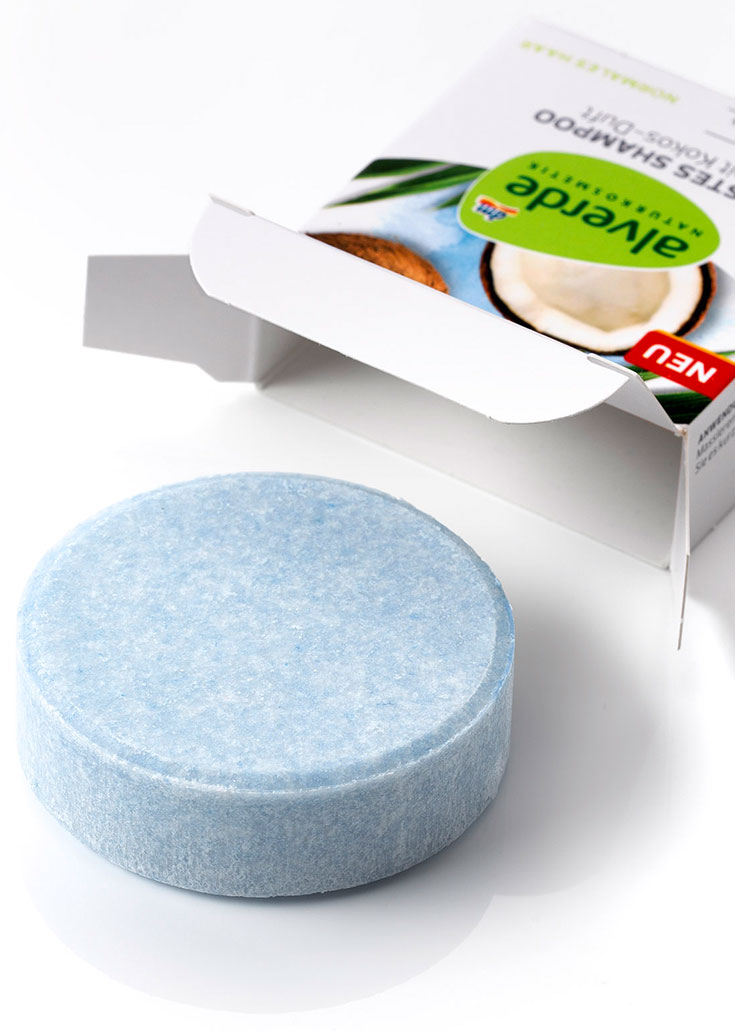 Kokos-Fans hergehört! Das Feste Shampoo von Alverde punktet mit seinem Karibik-Duft genauso wie mit einer tollen Pflegeleistung: Der Natrue-zertifizierte Shampootaler schäumt dank natürlicher Tenside ordentlich auf und hinterlässt das Haar mithilfe von Olivenöl und Sheabutter schön seidig. Kleiner Minuspunkt: Leider bröckelt das Shampoo etwas, sodass man lieber doppelt nachspült. Nichtsdestotrotz finden wir es super, dass plastikfreie Alternativen auch die handelsübliche Drogerie erobern! Über dm.de, 60 g, UVP 3,95 EUR, *vegan.