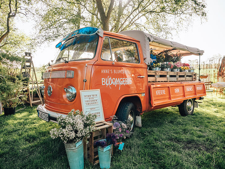 Der erste Blumenbulli Deutschlands – Flower-Power auf Rädern. Mit Bloomgerie bringt Anne Cavalier regionale Blumen auf Hamburgs Straßen oder zu deinem Event. Warum vor den Toren der Hansestadt die schönsten Blumen wachsen und weshalb Blumen spenden doppelt schön ist!