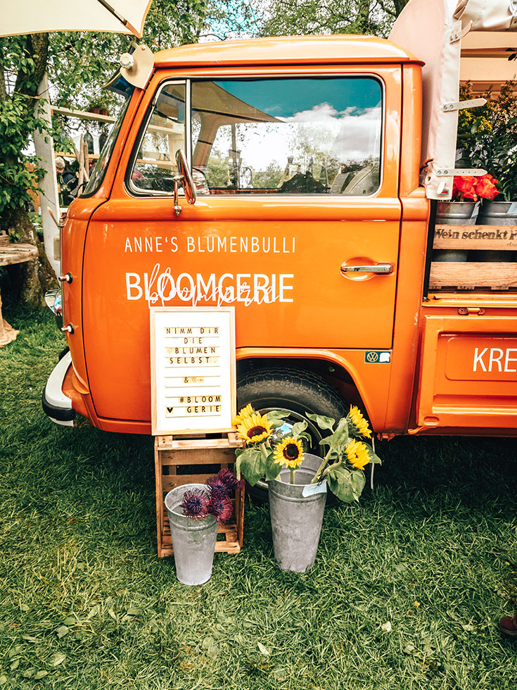 Gerade beginnt die Bloomgerie Winterpause, denn regional gibt es aktuell keine Blumen. Auch das ist eine wichtige Entscheidung. In den nächsten Wochen bietet Anne Tannenzweige und alles Weihnachtliche zum Kranzflechten & Co. an. Doch nach dem Sommer ist bekanntlich vor dem Sommer. Du kannst Bloomgerie für dein eigenes Event buchen. Nächstes Jahr wird Anne mit ihrem Blume-Bulli Else unsere Hochzeit noch ein bisschen schöner machen – und darauf freue ich mich mindestens genauso sehr wie auf den Sommeranfang.