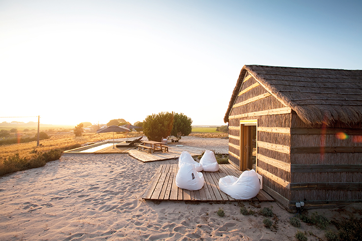 So ist es nur konsequent, dass auch der Fußboden des Wohnzimmers aus Tausenden der warmen, goldigen Körnern besteht. Wer jetzt dadurch aber fürchtet, dass er abends in einem Bett mit Peeling-Effekt zur Ruhe kommen muss, der sei beruhigt: Die Anlage ist in vier Häuser unterteilt, wobei drei davon als sandfreie Schlafzimmer mit jeweils eigenen Bädern dienen, das vierte hingegen ist das Wohnzimmer mit garantiertem Wow-Effekt und Beach Feeling pur. Zwei der Gebäude bestehen aus Holz und Schilf, die anderen aus weißem Beton mit Strohdächern. Erbaut wurde alles nach streng ökologischen Richtlinien.Im Wohnzimmer wird den Gästen täglich ein reichhaltiges Frühstück serviert, um so gestärkt in den Tag starten zu können. Und der bietet in Portugal so einiges: Innerhalb von 20 Minuten erreicht man mit dem Rad, das kostenlos ausgeliehen werden kann, den Strand, um sich dort in die erfrischenden Wogen des Atlantiks zu werfen. Wer den Drahtesel lieber meiden möchte, der kann die Umgebung auch wildromantisch auf dem Rücken eines Pferdes oder, für die Abenteuerhungrigen unter uns, mit einem Kajak erkunden. Das Casas na Areia bietet seinen Gästen hierfür extra Touren an. Durch die wunderbare Lage im Naturschutzgebiet Sado gibt es eine Vielzahl an Wildtieren wie Flamingos, Störche oder Delphine zu entdecken. Egal, für was man sich schlussendlich entscheidet: Die Zeit verrinnt in diesem Urlaub garantiert wie Sand zwischen den Fingern.