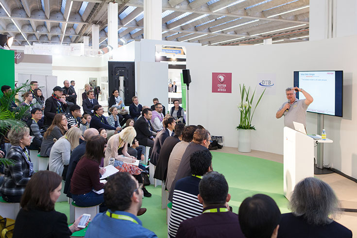 Die von der Messe Frankfurt ausgerichtete Heimtextil ist die international größte Messe für Heim- und Haustextilien. Zur vergangenen Heimtextil kamen rund 69.000 Fachbesucher aus 141 Ländern, um sich die Neuheiten der knapp 3.000 Aussteller anzusehen. An vier Tagen präsentieren hier jährlich Aussteller aus aller Welt ihre Produktneuheiten – das Angebot ist extrem vielseitig und reicht von Tapeten und Farben über Jalousien, Möbelstoffe und Teppiche bis hin zu Bettwäsche und Badezimmertextilien. Zum Glück macht sich die wachsende Nachhaltigkeitsbewegung auch auf der Frankfurter Fachmesse bemerkbar: Der Anteil an ökologisch und sozial verantwortlich produzierten Heim-, Haus- und Objekttextilien steigt mit jedem Jahr kontinuierlich an. Bei vielen Herstellern findet ein Umdenken statt, denn die Nachfrage nach ökofairen Produkten nimmt stetig zu. Und genau diese positive Entwicklung macht die Heimtextil in einem eigenen Bereich erlebbar: Im Green Village finden sich Siegelgeber und Zertifizierer wie beispielsweise Fairtrade und Cotton made in Africa, die interessierten Fachbesuchern Auskunft über nachhaltige und faire Produktionsweisen geben. Zudem gibt die Messe jährlich den praktischen Green Directory heraus – ein Ausstellerverzeichnis, in dem insgesamt 150 Anbieter nachhaltig produzierter Textilien aufgelistet sind. Ein hilfreicher Guide für Besucher, die die Messe nutzen, um gezielt nach nachhaltig produzierenden Ausstellern Ausschau zu halten. Und mit dem Green Café wurde der ideale Ort zum Networken geschaffen: Hier können Aussteller und Einkäufer miteinander ins Gespräch kommen, sich austauschen und untereinander vernetzen.