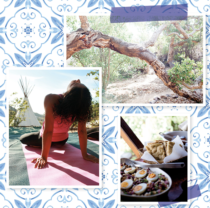 Im Surf & Yoga Eco Retreat gibt es weder eine Rezeption, noch ein offizielles Büro, ganz zu schweigen von einem Fernseher oder Radios. Was stattdessen vorherrscht, ist eine tiefenentspannte Atmosphäre. Genau der richtige Ort also für alle, die gerne achtsam reisen möchten. Denn hier wird die Kunst des Einfachen zelebriert – rustikale, selbst gezimmerte lange Holztafeln stehen unter freiem Himmel, umsäumt von Lavendelblüten, Pfirsich- und Zitronenbäumen sowie alten Korkeichen, zwischen denen Hängematten baumeln. Im hauseigenen Gemüsegarten wachsen und gedeihen Salate, Tomaten, Zucchini, Rote Bete, Erdbeeren, Weintrauben, Pflaumen, Kohl sowie diverse Kräuter, die den Mahlzeiten einen Frischekick verleihen. Der Strom wird zu 100 Prozent von der Sonne generiert und selbst das Wasser der Outdoor-Duschen wird von der Sonne erwärmt.