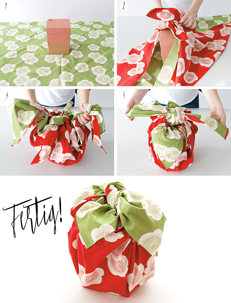 It´s a Wrap! Mit diesem aus Japan stammenden Trend wird das Auspacken von Geschenken zu Weihnachten noch schöner – und vor allem umweltfreundlicher! »Furoshiki« nennen sich die Baumwolltücher, die kunstvoll zum Geschenkpapier gefaltet werden. Eins, zwei oder auch zehn Mal. Die Wickeltücher können im Gegensatz zu der schnell zerfetzten Einwegverpackung immer wieder verwendet werden. Die perfekte Verpackung für Geschenke zu Weihnachten.