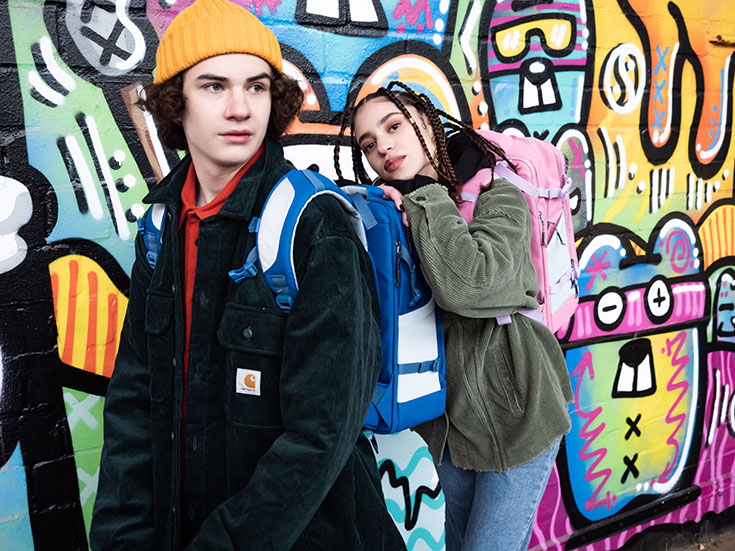 Die nachhaltigen Schulrucksäcke von Kattbjoern sollen Teenager dazu animieren, ihrer Kreativität Raum zu geben und ihren eigenen Style zu finden. Neben smart durchdachtem Stauraum für Bücher, Hefte und Co. verbirgt jedes Modell im Inneren ein individuelles Design, das in Kooperation mit Künstler:innen aus ganz Europa gestaltet wurde. Für alle, die selbst kreativ werden wollen, ist das Blanko Design Eat My Style wie gemacht: Es wurde extra fürs individuelle Be- und Ausmalen mit Acrymakern konzipiert, die beim Lieferumfang sogar enthalten sind. 2-in-1 Design: Außerdem haben alle Eco Schultaschen von Kattbjoern eine abnehmbare Flip-Front. So könnt ihr frei wählen, ob ihr heute lieber das bunte Artwork eures Rucksacks zeigen oder unifarben unterwegs sein wollt. Was wir richtig gut finden: Die wendebare Fronttasche kann auch einzeln als praktisches Laptop Case verwendet werden. Denn am nachhaltigsten handelt, wer seine nachhaltige Schultasche so lange wie möglich benutzt.