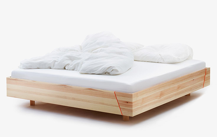 Das Kiezbett* gibt es in sieben verschiedenen Größen. Von 90 cm bis 220 cm Breite. Jesse hat sich für eine Breite von 140 cm entschieden. Sein Kiefernbett ist weiß lasiert. Wer es etwas dunkler mag, wählt die geölte Holzvariante. Bei beiden ist die schöne und einzigartige Maserung des Holzes weiterhin sichtbar. Durch die versteckten Füße sieht es fast so aus, als würde das Bett schweben. Gute Nächte, wie auf einer Wolke gebettet. Das zeitlos schöne Design spiegelt den einfachen Aufbaumechanismus wieder. Es gibt das passende Lattenrost und Kiefernholz-Rückenlehne zu jeder Bettgröße. Die Berliner gehen sogar so weit, dass sie für einen Aufschlag von 150 Euro euer Bett so gestalten, wie ihr es euch wünscht. Außerdem klatscht Lara schon fleißig in die Hände, denn im kommenden Jahr gibt es sogar ein Kiezbett mit Stauraum unter dem Bett – perfekt für minimalistisches Wohnen in der City!