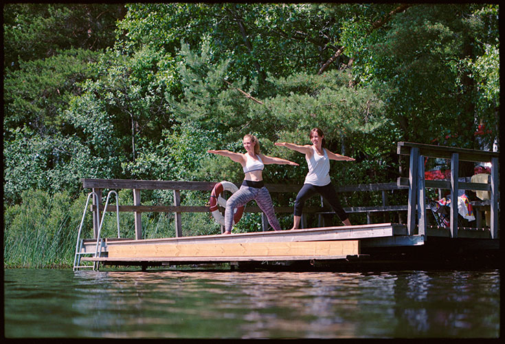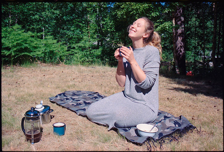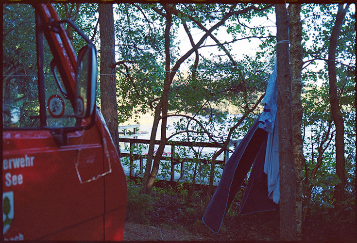 Morgens um 06:30 rollten Hanumans Räder das erste Mal auf schwedischen Boden. Wir wählten eine Route an der Ostküste entlang und schauten stundenlang nicht auf die Uhr. Gegen Nachmittag kamen wir in Urshult an, einer 790 Einwohner Gemeinde. Eine kleine Kreuzung führte uns über einen Schotterweg immer und immer und immer tiefer in den Wald. Von einem kleinen Häuschen am Wegesrand aus winkte uns eine junge Frau freudig zu, als unser Feuerwehrbus vorbeischlich. Marijke, die Camping-Verantwortliche, wie sich später herausstellte. Eine wundervolle Frau mit einem ebenso tollen Partner, die uns am vorletzten Tag, Romans Geburtstag, mit frischen Kaffee und Kuchen überraschten. Herzallerliebst! Um 16:15 »checkten« wir ein, was bedeutete, dass wir uns einen Platz zum Campen aussuchten. Wir landeten auf einer kleinen Halbinsel, unter Birken, Linden und Kiefern, mit eigenem Seesteg. Der Beginn einer Urlaubswoche, die mich so sehr nährte, wie es kaum ein Urlaub zuvor getan hatte.