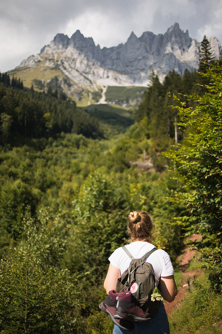 Und nun sind auch wir drei hier. Kraxeln fröhlich durch die Berge, schwitzen in der Kristall-Dampfsauna, springen nackt in den Naturbadesee mit Blick auf den Wilden Kaiser, lernen über Flora & Fauna dieses mächtigen Gebirgszuges und genießen das unfassbar gute, vegetarische Essen und den selbstgemachten Käse von Käser Sepp von der Stangl-Alm. 400 Gäste – und trotzdem sehen wir immer wieder die gleichen Gesichter. Wir grüßen uns am Frühstückstisch und fragen nach dem Weg, wenn wir mal wieder eine kleine Holztreppe zu früh abgebogen waren und uns verlaufen haben (was durchaus die ersten Tage im Stanglwirt passieren kann). Auch eine Form von Nachhaltigkeit: Menschen so zu begeistern, dass sie das eigene Konzept unterstützen. Und immer wieder kommen!