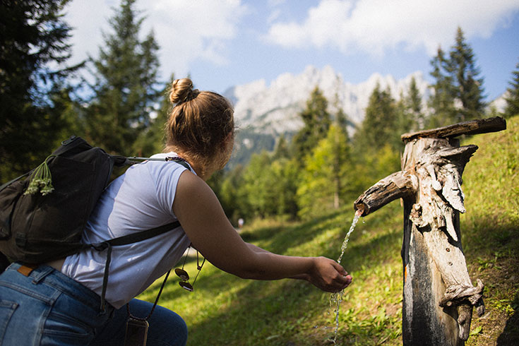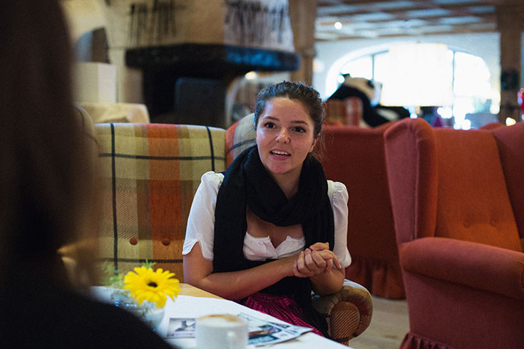 Heute beherbergt der Stanglwirt rund 400 Gäste – und das mit einer jährlichen Auslastung von 90%. Während unserer Zeit im Bio-Hotel ist gerade Stammgast-Woche. Menschen jeden Alters, aus allen Ecken der Welt, haben diesen Ort ins Herz geschlossen. Das Gemäuer, errichtet aus ökologischen, regionalen Materialien wie Zirbenholz und örtlich angemischtem Kalkmörtel. Seit jeher wird das Gebäude nur nach baubiologischen Kriterien erweitert und verändert. Die Schlafstuben, die sich, großzügig und behaglich, schnell nach eigenem Zuhause anfühlen! Oder das hauseigene Wasser aus der Kaiserquelle. Eine Karaffe kostet symbolische 2 Euro. Damit unterstützt das Hotel jedes Jahr Brunnenbauprojekte in Afrika. Seit 10, 15 oder 20 Jahren kommen Menschen immer wieder hier her, um das naturnahe Ambiente zu Füßen des Wilden Kaisers zu genießen.