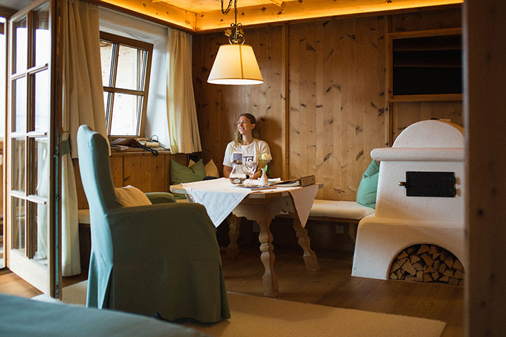 Wir sitzen in der alten Gastwirtschaft des Hotels. Das Holz des Raumes sei mehr als 400 Jahre alt, erzählt uns eine freundliche Dame in schön besticktem Dirndl. An diesem Abend sehen wir zum ersten Mal Balthasar Hauser. Inhaber und Gründer des Stanglwirts. Er plauscht mit den Gästen, erkundigt sich, ob denn alles in bester Ordnung sei. Wir nicken und knuspern an unserem frischen, saisonalen Ofengemüse aus der Region. 1966 übernimmt Balthasar nach dem Tod seiner Mutter, die den Gasthof führte, mit 17 Jahren alleine die urige Gaststätte. Die Geburtsstunde eines Konzepts, das ich in dieser Form bis dato in keiner so herzlichen und familiären Art und Weise kennengelernt habe. 1968 beginnt Balthasar das Gebäude mit Altholz von den umliegenden Bauernhöfen auszubauen. Schon bald startet der erste Hotelbetrieb. Rund 50 Jahre später legt die Familie Hauser nach wie vor großen Wert auf den Schutz der heimatlichen Natur – und nutzt die beachtliche Bekanntheit, um sich für Mensch & Natur stark zu machen.
