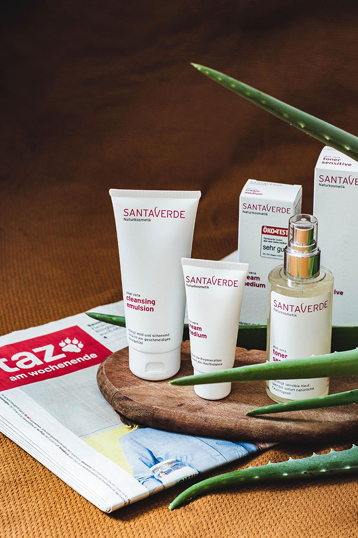 Wer schön sein will muss lesen. Für unser taz x Peppermynta Abo haben wir gemeinsame Sache mit einer unserer liebsten Naturkosmetik Marken gemacht: Santaverde. Für dein Abo wartet ein Santaverde Beauty Set im Wert von 70 Euro als Prämie auf dich. Darin enthalten sind die »Classic Cleansing Emulsion«, der »Classic Toner« und die »Creme Medium«.