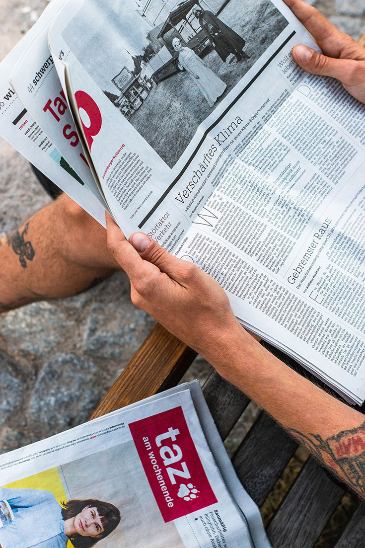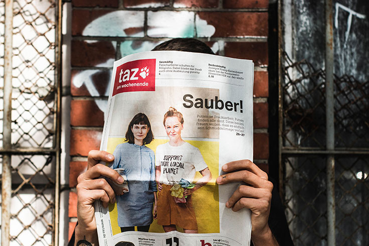 Die Tageszeitung aus Berlin ist ein solidarisches Verlagshaus und Vorreiter in Europa. taz drohte ein Bankrott. Sie machten aus der Not eine Tugend und entwickelten ein revolutionäres Modell: Seit den 90er Jahren ist die Tageszeitung eine Genossenschaft. Das bedeutet? Viele statt ein:e Verlagsbesitzer:in. Es gibt einen anderen Weg als den Verlag an einen Investor zu verkaufen und in einen Konzern umzuwandeln. Über 20.000 Menschen besitzen heute Genossenschaftsanteile der taz. Jeden Tag kommen mehr dazu.