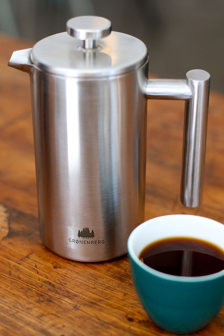Schluss mit Wegwerf-Kaffeekapseln! Mit dieser minimalistischen Stempelkanne von Groenenberg kannst du deinen morgendlichen Kaffee genießen, ohne die Umwelt zu belasten. Die schlichte Kanne ist 100% plastikfrei und besteht aus hochwertigem Edelstahl. Zudem wird sie mit drei Ersatzfiltern und einer Tragetasche geliefert. Für die Verpackung nutzt das junge Start-up aus Deutschland ausschließlich unbehandelten Karton und vermeidet bewusst unnötigen Verpackungsmüll. 31,99 Euro über groenenberg-coffee.de.