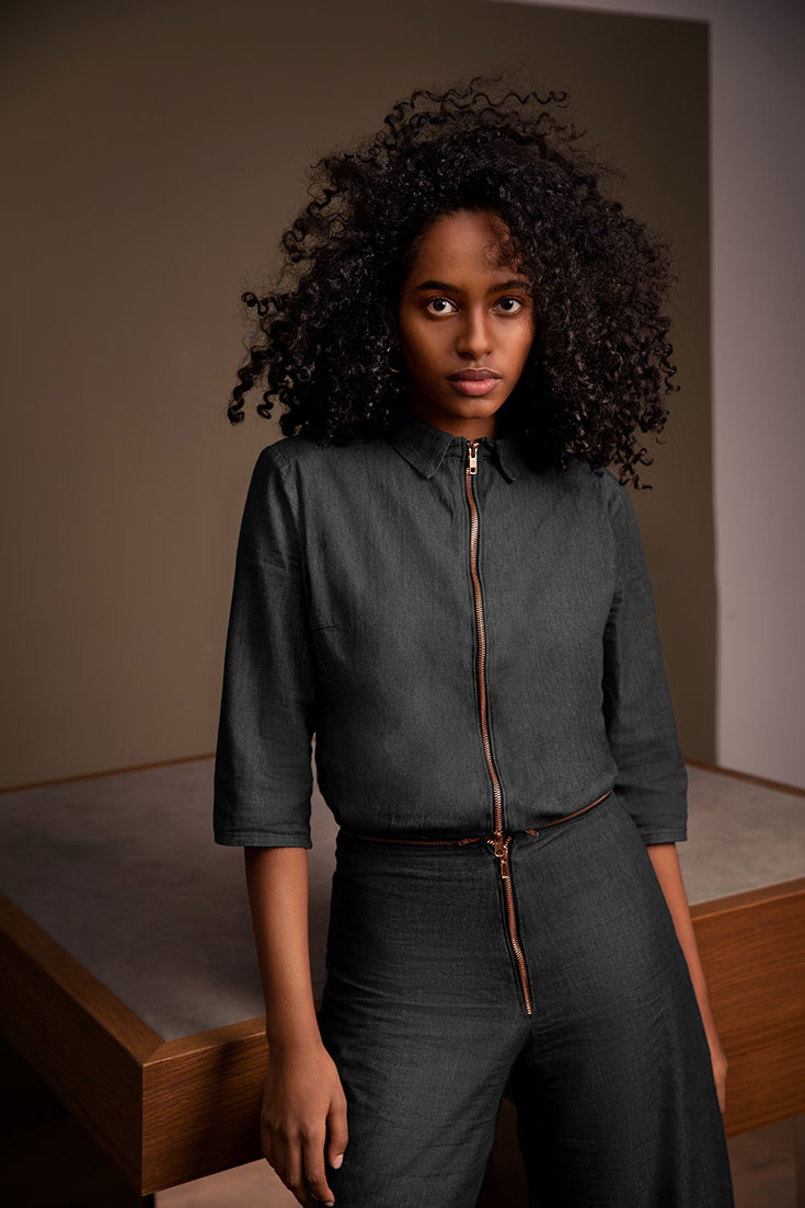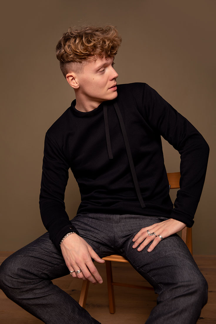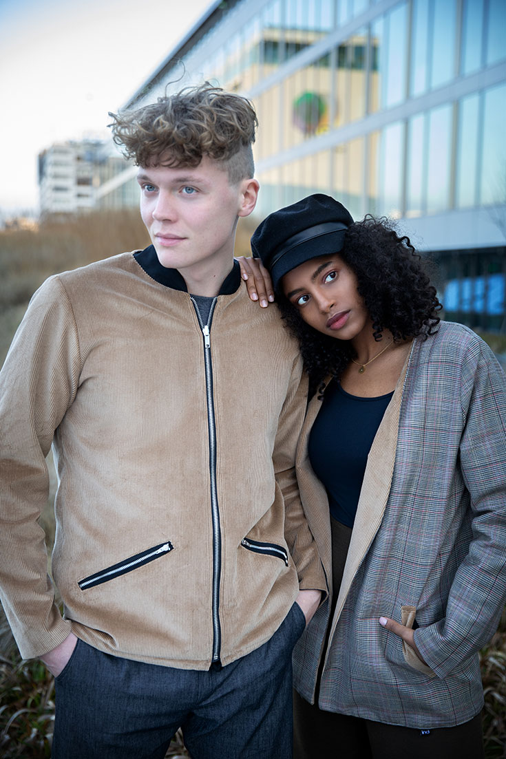 Das Sortiment des Labels ist in zwei Kollektionen aufgeteilt: Die Classic Collection, welche im Laufe der Jahre die gleichen zeitlosen Teile enthält, die in Estland produziert werden und die Limited Collection, die im eigenen Atelier in Berlin Neukölln designt und in Handarbeit hergestellt wird. Ihr findet neben Two-sided Blazern und Wendeblousons zum Beispiel auch Kleider, die ihr auf vier verschiedene Arten tragen könnt – mit dem Ausschnitt vorne oder hinten, in schwarz oder khaki. Nicht zu vergessen natürlich: der »Rulli«, ein Pullover, der innerhalb weniger Sekunden dank einem Tunnelzug im Kragen und Saum und einiger Druckknöpfe an den Ärmeln, zum Rucksack wird. Dieser gewann im Jahr 2020 sogar den Vegan Fashion Award von Peta in der Kategorie bestes Herren Accessoire – wow! Die Materialien, die Doublethewears nutzt, stammen überwiegend aus Deutschland sowie angrenzenden EU-Ländern. Dank der Zero Waste Politik des Labels wird jeder Stoffrest weiterverarbeitet oder recycelt.