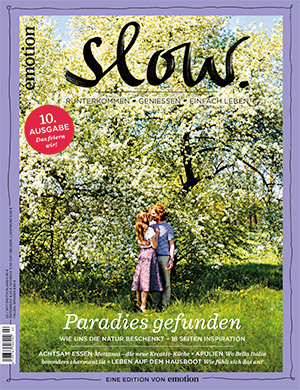 Achtung: Unser Peppermynta Fair Fashion Shooting ist auch in der aktuellen Ausgabe des Emotion SLOW Magazins zu sehen! Die Titelstory der SLOW Frühlingsausgabe (ab 13. Mai im Handel erhältlich) nimmt uns mit an paradiesische Orte in der Natur und verrät, wie achtsames Essen gelingt. Außerdem entführt die Ausgabe nach Bella Italia, genauer gesagt nach Apulien und erzählt Geschichten über das Leben auf dem Hausboot. Die Ausgabe ist wie immer randvoll mit Inspiration und schenkt gleichzeitig Ruhe und Gelassenheit. SLOW –Runterkommen, Genießen und Einfach leben.