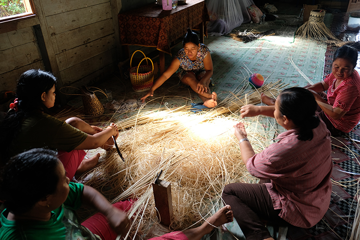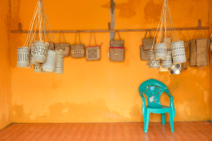 Kuching liegt auf der malaysischen Insel Borneo und ist die Hauptstadt des Bundesstaates Sarawak. Die Region ist für seine traditionelle und unglaublich zeitaufwendigen Songket-Webtechnik bekannt, sowie für seine indigenen Volksgruppen wie beispielsweise die Penans, ein einstiges Nomadenvolk, das inzwischen weitestgehend sesshaft geworden ist, dessen Zuhause jedoch nach wie vor der Urwald ist. Die Penans sind unter anderem Meister in der Flechtkunst. Seit Generationen flechten sie kunstvolle Körbe, Taschen und Wohnaccessoires aus Rattan und verdingen auf diese Weise ihren bescheidenen Lebensunterhalt. Am Rande des Zentrums der etwa 600.000 Einwohner großen Stadt Kuching liegt die Textilproduktionsstätte Tanoti Crafts, die sich auf die Fertigung von Rattan- und Songket Produkten spezialisiert hat. Genau hierhin hatte es das Berliner Designer-Duo Anna Teuber und Franzi Kohlhoff von Teuber Kohlhoff im Rahmen der Ikat/eCut Textilprojektes verschlagen, bei dem die beiden gemeinsam mit sechs weiteren Designern teilnehmen durften. Ikat ist die Bezeichnung für ein traditionelles Gewebe, das seinen Ursprung in Asien hat und durch eine spezielle Färbetechnik ein bestimmtes Muster erhält – das Ikat-Muster. Bei eCut steht das »e« für Electronic und »Cut« für Schneiden, für Innovation also. Die Idee hinter dem Projekt: Was passiert, wenn Designer aus Deutschland mit südostasiatischen Textilproduzenten zusammentreffen? Und wie können sie mit- und voneinander lernen, marktfähige Produkte zu entwickeln, die sich sowohl in Europa als auch in Südostasien verkaufen lassen? Wie können sie traditionelles Kunsthandwerk geschickt mit innovativem Design verknüpfen und nachhaltige Arbeitsbeziehungen aufbauen? Ein Experiment, das, wenn es im Kleinen gelingt, Vorbild für den großen Textilmarkt sein könnte.