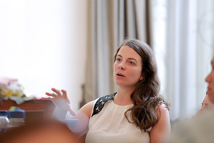 Jackie Fong ist eine der beiden Firmenchefinnen von Tanoti Crafts und führt den Betrieb seit 2012 als soziales Unternehmen. Jackie ist eine kleine, resolute Powerfrau, die ebenso gewitzt und verschmitzt wie zielstrebig ist. Vor Jahren hat sie ein kleines Vermögen an der Börse verdient und besitzt inzwischen drei Hotels. Die Hotels sind allerdings eher Mittel zum Zweck. Denn die Enddreißigerin verwendet all ihre Energie und einen Großteil ihrer Lebenszeit darauf, traditionellen malaysischen Handwerkswerks-Techniken mithilfe von Tanoti Crafts zu einem Imagewandel zu verhelfen und dieses uralte Kulturgut für junge Frauen wieder attraktiv zu machen. Tanoti ist für die Unternehmerin, die für ihre Angestellten wie eine Löwin kämpft, weit mehr als nur eine Produktionsstätte, sondern eine echte Lebensaufgabe. Sie ist überzeugt: »Geld zu verdienen ist relativ einfach, einen wirklichen Unterschied zu machen, ist wesentlich schwieriger.« Jackies Ziel ist es, eine enge Zusammenarbeit auf Augenhöhe zu kultivieren, Frauen zu stärken und zu finanzieller Unabhängigkeit zu verhelfen sowie Traditionen mit Innovationen zu verknüpfen und die Frauen dazu zu ermutigen, sich immer wieder auf Neues einzulassen. Die Textilresidenz des Goethe Institutes kam also genau zur richtigen Zeit am richtigen Ort!