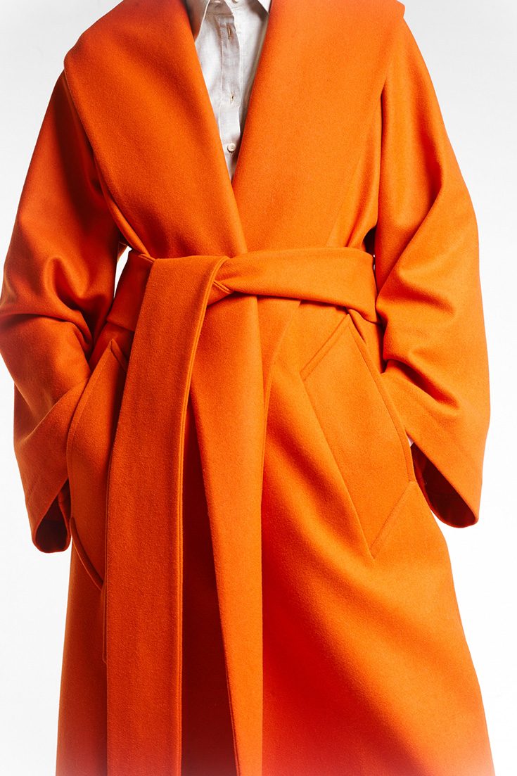 Dieser lange Wickelmantel mit Schalkragen von Margaux Lonnberg hebt sofort die Laune. Er besitzt einen lockeren, glatten Schnitt und verfügt über einen großen, abnehmbarem Gürtel, der das Volumen an die Taille anpasst. Der orangefarbene Mantel ist aus einem warmen Wollstoff gefertigt und ist eilweise gefüttert. Made in Paris with much love! Wer es etwas schlichter mag: Das wunderschöne Modell gibt es auch in Schwarz und Camel. 545 Euro über margauxlonnberg.com.