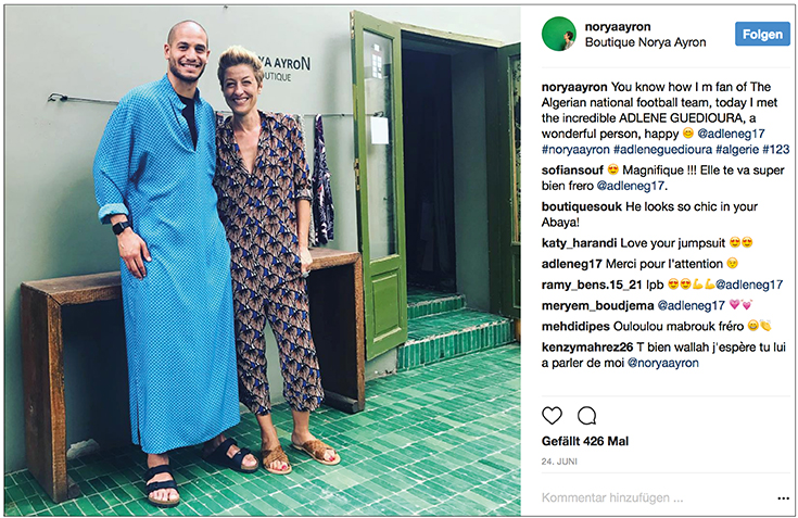 Aber auch harte Jungs wie der algerische Fußballspieler Adlène Guédioura stehen auf die zarten Stoffe. Die Unisex-Silhouetten stehen schließlich jedem gut, auch wenn der Schnitt in der westlichen Modewelt eher an ein Kleid erinnern mag. Der sogenannte »Djellaba«, wie man das Kaftan ähnliche Obergewand in Marokko ursprünglich nannte, wurde bis ins 20. Jahrhundert übrigens ausschließlich von Männern getragen. Mutige Männer tragen Maxi-Länge.