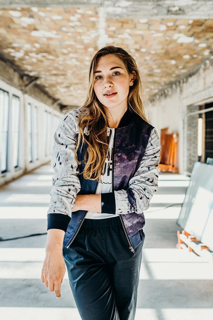 Amina Stella Steiner von Stellamina trägt ebenfalls das Stand-Up Shirt von Waterkoog, einen Blouson von Globe Hope* und eine Hose von Movinun