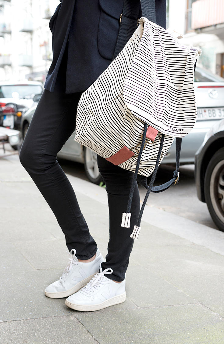 Eco Fashion, Slow Fashion und faire Mode: Glore – Fair Fashion Look mit Streifen-Hoodie - Labels: Armedangels Ava Stripes und Veja V10 und Glimpse Clothing Traveller
