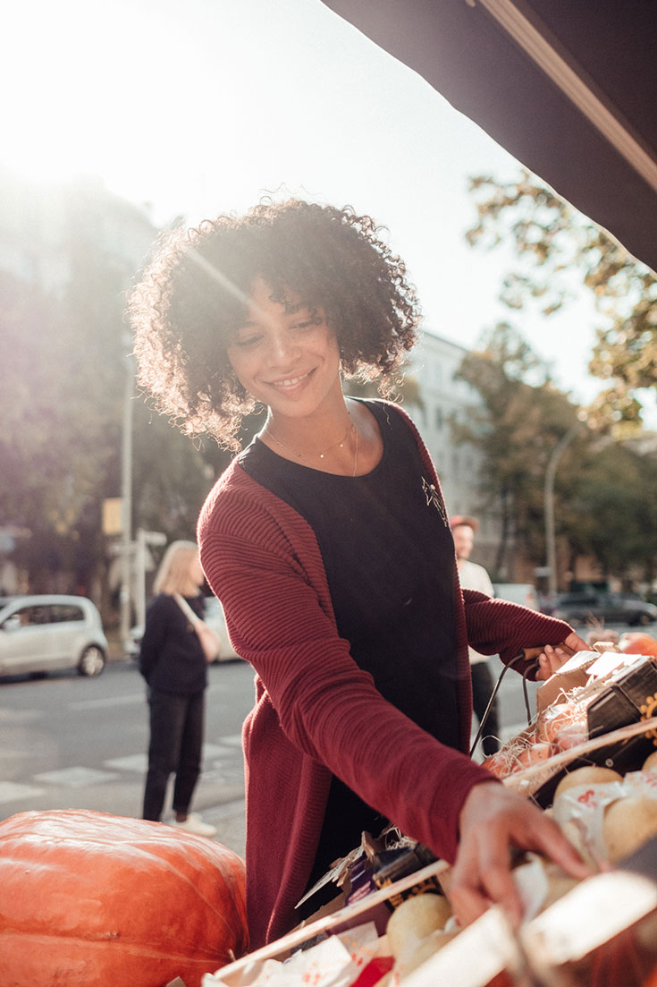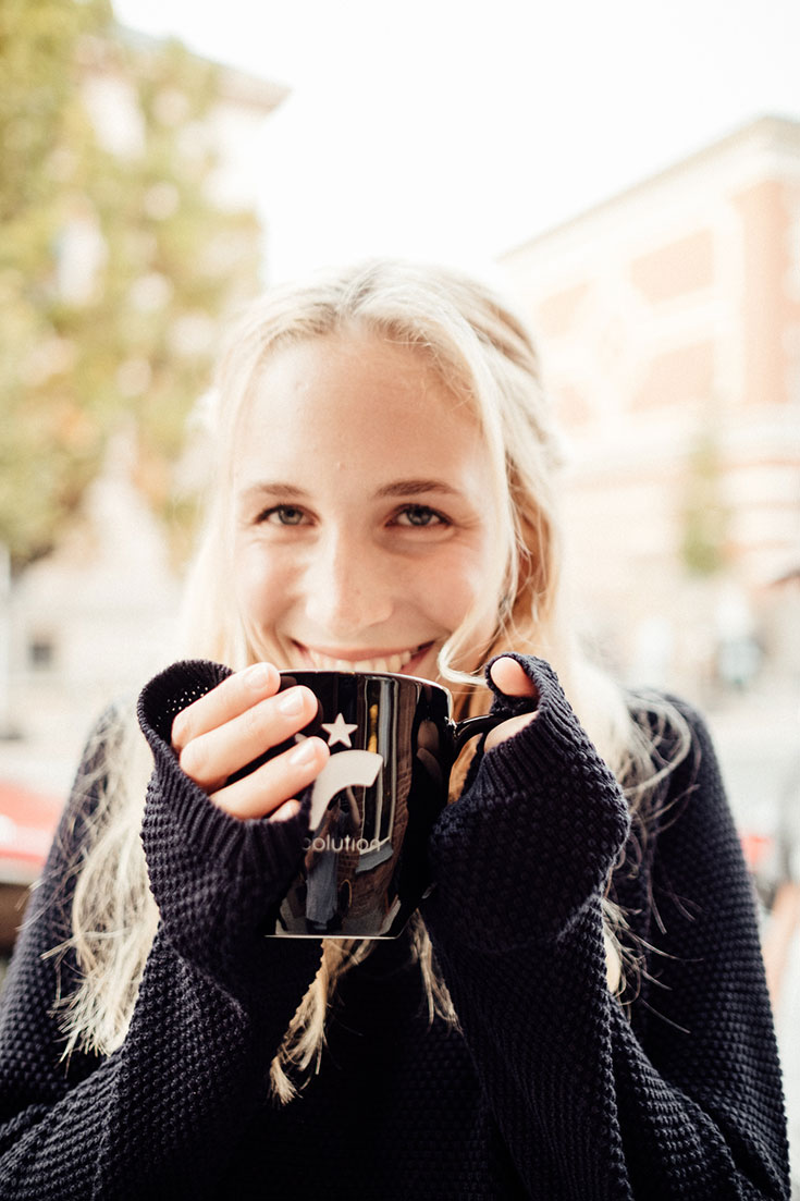 Was mir besonders gefällt, ist, dass das junge Label sich bewusst mit Menschen und ihrem Umgang mit Kleidung auseinandersetzt. Was sind richtige Lieblingsteile? Wo lohnt es sich, in Qualität und Langlebigkeit zu investieren? Was tragen wir am meisten? Mein Favorit für diesen Winter ist das aus 100% Bio-Baumwolle gestrickte Kleid »#Points«. Ein puristisches Basic in Aubergine, das von Festessen bis Kuschelstunde und Schneespaziergange ein schicker Begleiter ist.