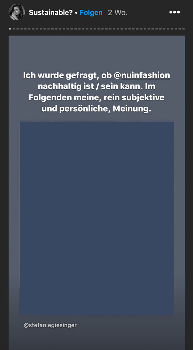 Ein Artikel wie dieser schreibt sich in der Regel nicht über Nacht. Was gut ist – denn manchmal geschehen während der Erstellung interessante Wendungen. Nach immer lauter werdender Kritik in den sozialen Medien hat sich NU-IN wohl dazu entschieden ihren Claim von »Fashion first. Sustainable always« in »Fashion. Sustainably driven« auf ihrer Website zu ändern. Beim großen Online-Shop About you wird NU-IN allerdings immer noch mit diesem Claim »Fashion first. Sustainable always« beworben.