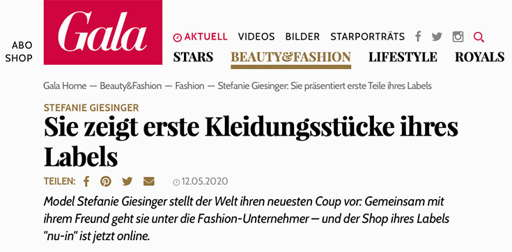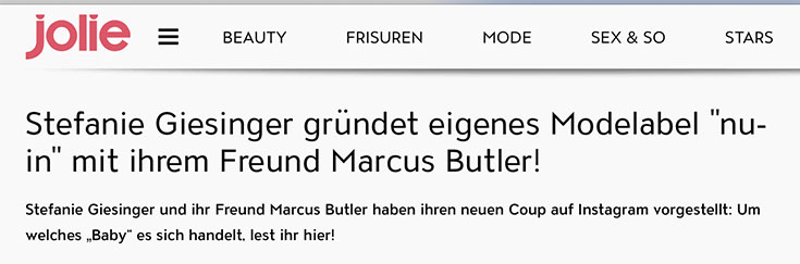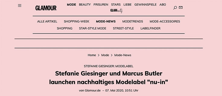 Die Presse, wie z.B. Gala oder Glamour (siehe oben) feiert das nachaltige Modelabel NU-IN von Stefanie Giesinger und Marcus Butler. Was rechtlich gesehen nicht ganz korrekt ist, denn laut Markenregister sind die beiden keine Geschäftsführer noch haben sie eine Vertretungsberechtigung für die Gesellschaft, sondern sind lediglich Gesellschafter der Marke.