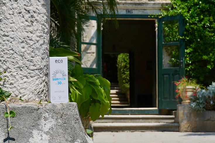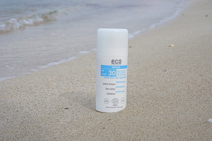 Ich persönlich mag drei Sonnenpflege Linien von Eco Cosmetics am liebsten: Die Sensitive Serie, die Neutral Serie und die Sonnenöl Produkte. Ich bin ein mittelheller Haut-Typ und bräune sehr langsam. Tendenziell gehöre ich auch eher zum Team Krebs-Rot als Grazien-Glow, weshalb ich mich viel und oft im Schatten aufhalte oder Mut zum Stroh-Hut beweise. Da ich ein hellerer Haut-Typ bin, ist der sogenannte »Weißel-Effekt«, der bei mineralischen Sonnenpflege-Produkten auftreten kann, weniger sichtbar. Bei dunkleren Haut-Typen, wie zum Beispiel der meiner wunderbaren Redaktions-Freundin Annemarie, die ebenfalls ein wahrer Sonnenschutz-Pro ist, ist der Effekt etwas sichtbarer. Meiner Meinung nach aber auch total vertretbar, denn synthetischer Sonnenschutz, der nach 20 bis 30 Minuten durch die Verwendung von synthetischen UV-Filtern in die oberste Hautschicht einzieht, wirkt im Körper.