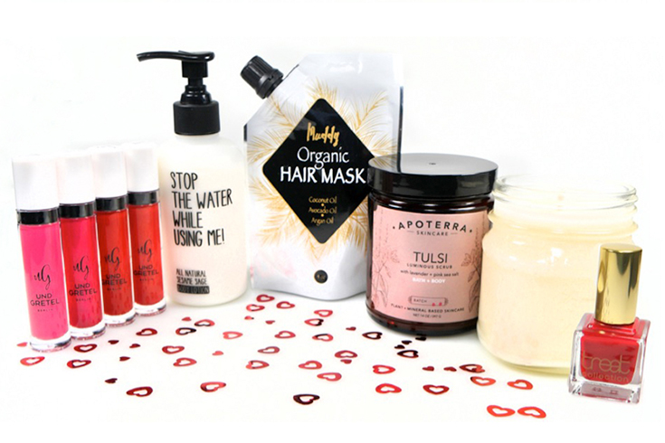 Vier verschiedene Sets, gefüllt mit dekorativer Kosmetik und wohltuenden Hautpflegeprodukten, stehen zur Auswahl. Ob Körperöl, Lipgloss , Peeling-Seife oder Haarmaske – für jedes Pflegebedürfnis findet sich die passende Produkt-Zusammenstellung. Die Valentinsboxen kosten, je nach Größe, zwischen 30 und 99 Euro und sind bestückt mit Naturkosmetikmarken wie APOTERRA, LANI, UND GRETEL oder STOP THE WATER WHILE USING ME. Damit die Sets auch eine persönliche Note erhalten, kann man aus verschiedenen Nagellack- und Lippenstiftfarben wählen. Wichtig: Wer eines der Sets pünktlich zum Valentinstag verschenken (oder sich selbst verwöhnen) möchte, sollte bis 11. Februar auf spatacular.de bestellen.
